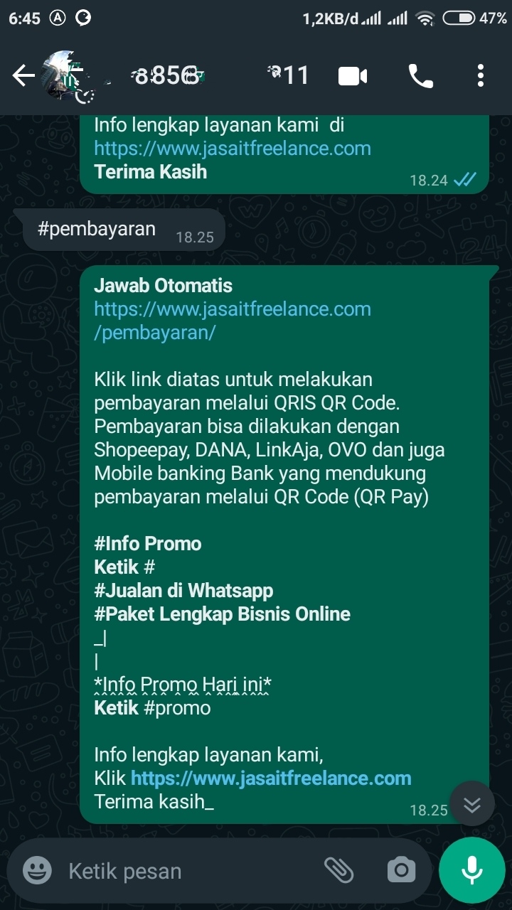 Respon otomatis Whatsapp Untuk Pedagang online / Instansi